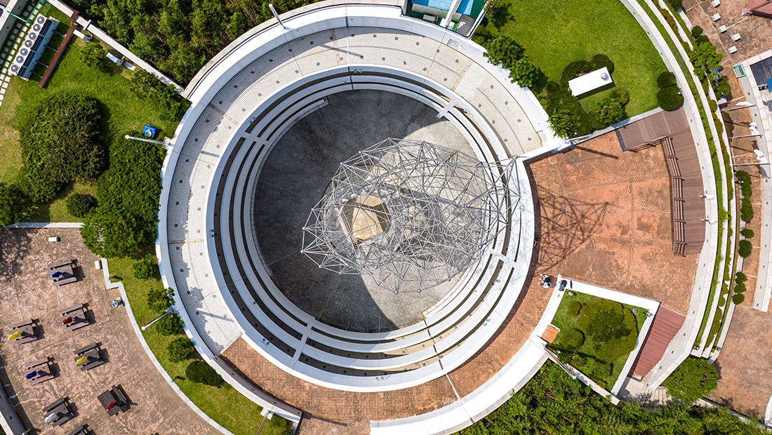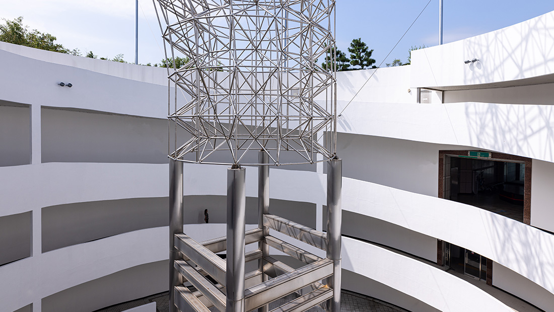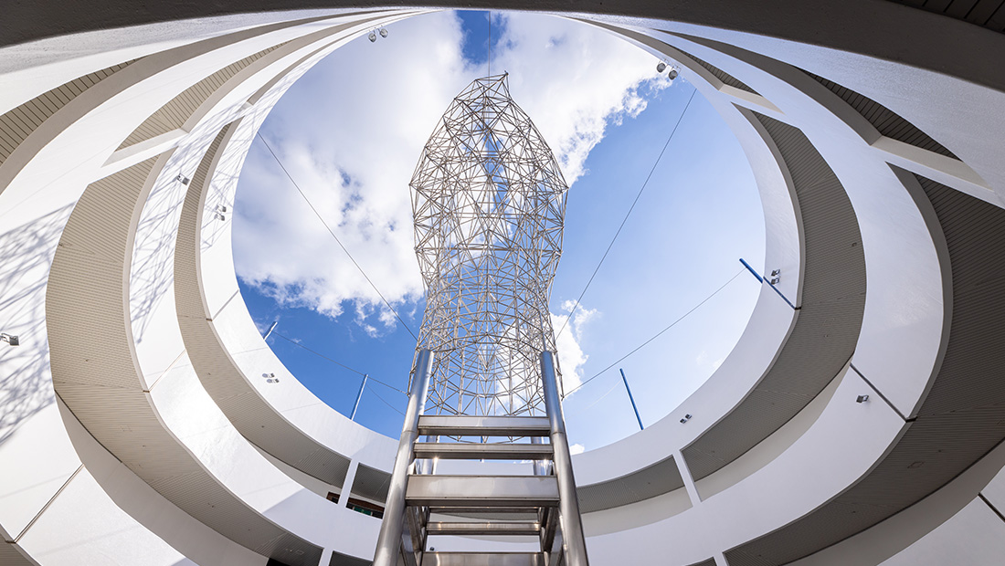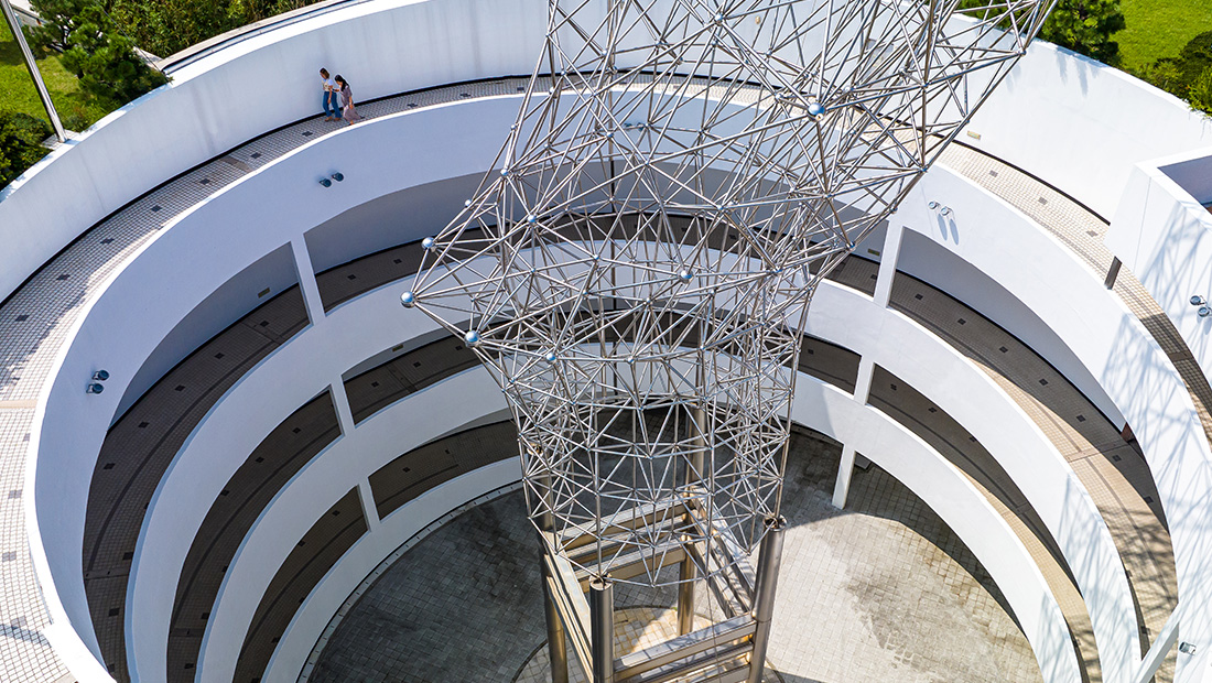 并在其正中安装象征雕塑后从地下1层爬上4层‘念愿之所(展望台)’的